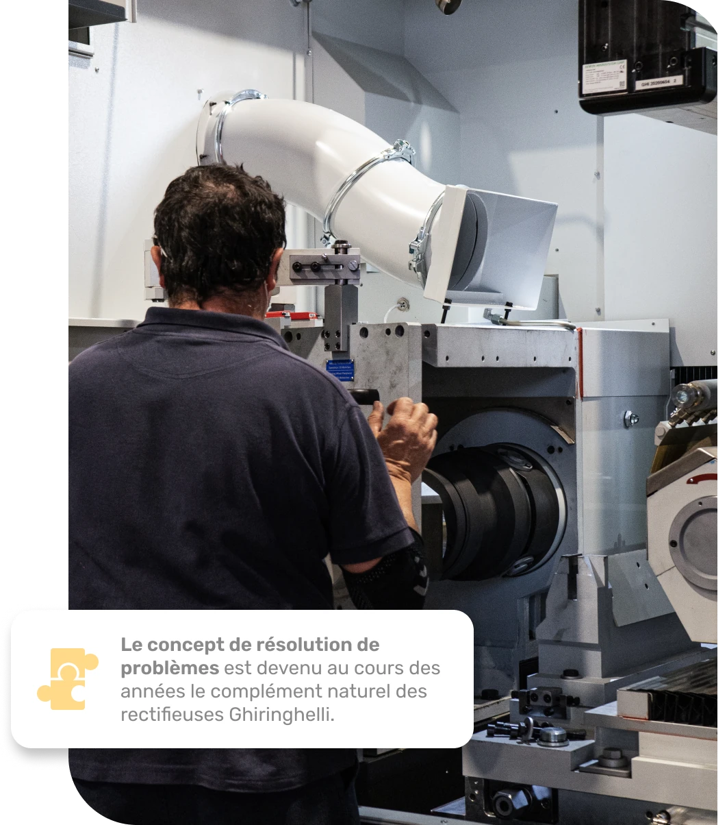 Qualité et fiabilité du produit, capacité à comprendre et à résoudre les exigences de production du client et du marché, collaboration étroite et assistance à l'utilisateur final, ont permis à la Rettificatrici Ghiringhelli d'être reconnue par un public de plus en plus large comme fournisseur et partenaire fiables pour des solutions de rectification sans centre hautement technologiques.